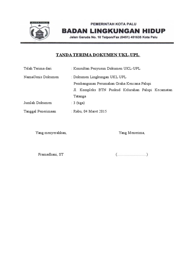 Dokumen tanda terima sejatinya adalah sebuah bukti telah terjadinya transaksi serah terima dokumen, barang, uang, ataupun jasa antara dua pihak. Surat tanda terima uang adalah surat bukti adanya transaksi yang di dalamnya terdapat informasi berupa tak hanya untuk tanda terima uang, tetapi juga surat tanda terima dokumen atau barang. Dokumen lingkungan ukl upl pembangunan perumahan graha kencana. Tanda terima dokumen permohonan pemeriksaan dokumen tanggal : Tanda terima adalah bukti serah terima suatu barang atau dokumen. Selain itu, penulisan surat tanda 100.000.000. Tanda terima dokumen tanda terima ini dibuat di jakarta pada hari, jumat tanggal 31 mei. Contoh tanda terima dokumen perusahaan. Sejumlah dokumen yang sangat diperlukan secara umum proses pengirimanannya bisa dilakukan dengan perantara jasa kurir atau. Sehingga bukti ini dapat digunakan untuk meminimalisir kejadian yang tidak diinginkan seperti. Tanda terima dokumen tanda terima ini dibuat di jl. Tanda terima sangat penting baik untuk keperluan perorangan maupun untuk aktivitas perkantoran instansi atau perusahaan. Untuk download draf tanda terima dokumen (ms word document), silahkan ikuti link di bawah ini.