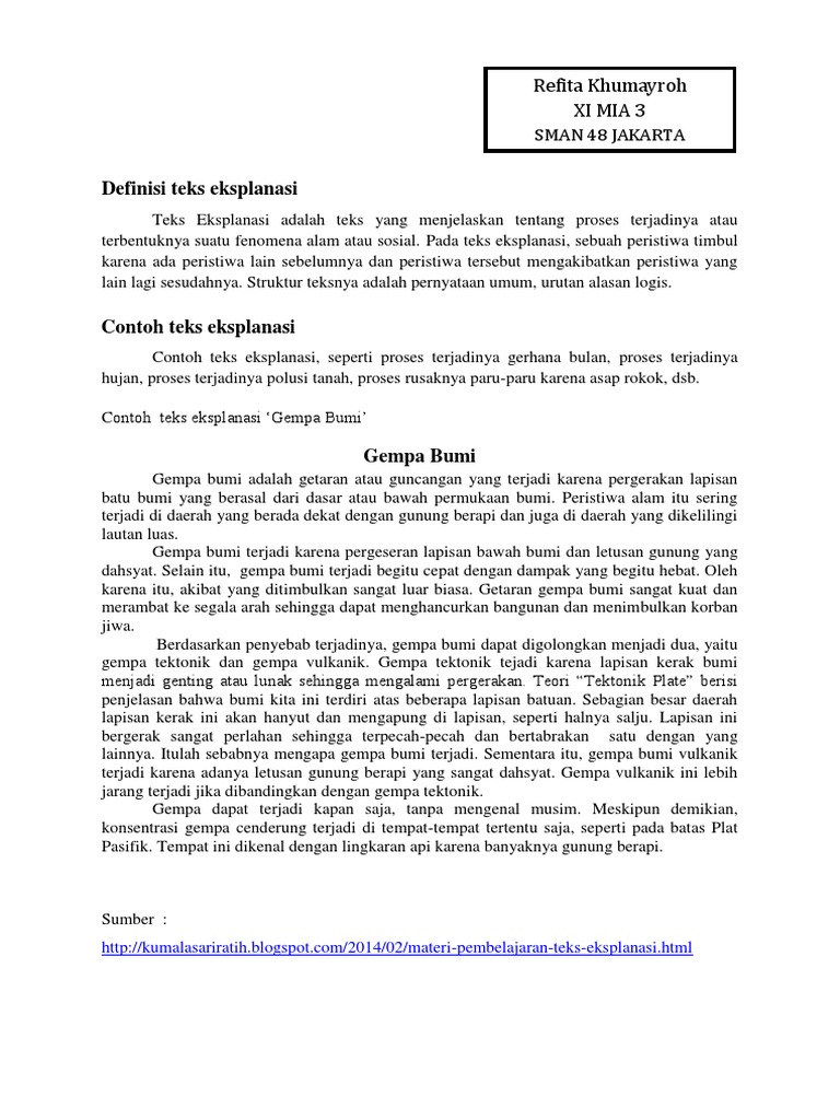 Ciri bahasa teks eksplanasi adalah sebagai berikut. Jadi, yang membedakan teks persuasi dengan teks lainnya adalah adanya unsur bujukan yang bertujuan agar pembaca melakukan sesuai anjuran penulisnya. Jul 25, 2021 · kaidah kebahasaan teks eksplanasi. Tsunami, banjir, gempa bumi, hujan, dan lainnya. Belakangan ini gempa bumi menjadi buah bibir di kalangan masyarakat indonesia.
